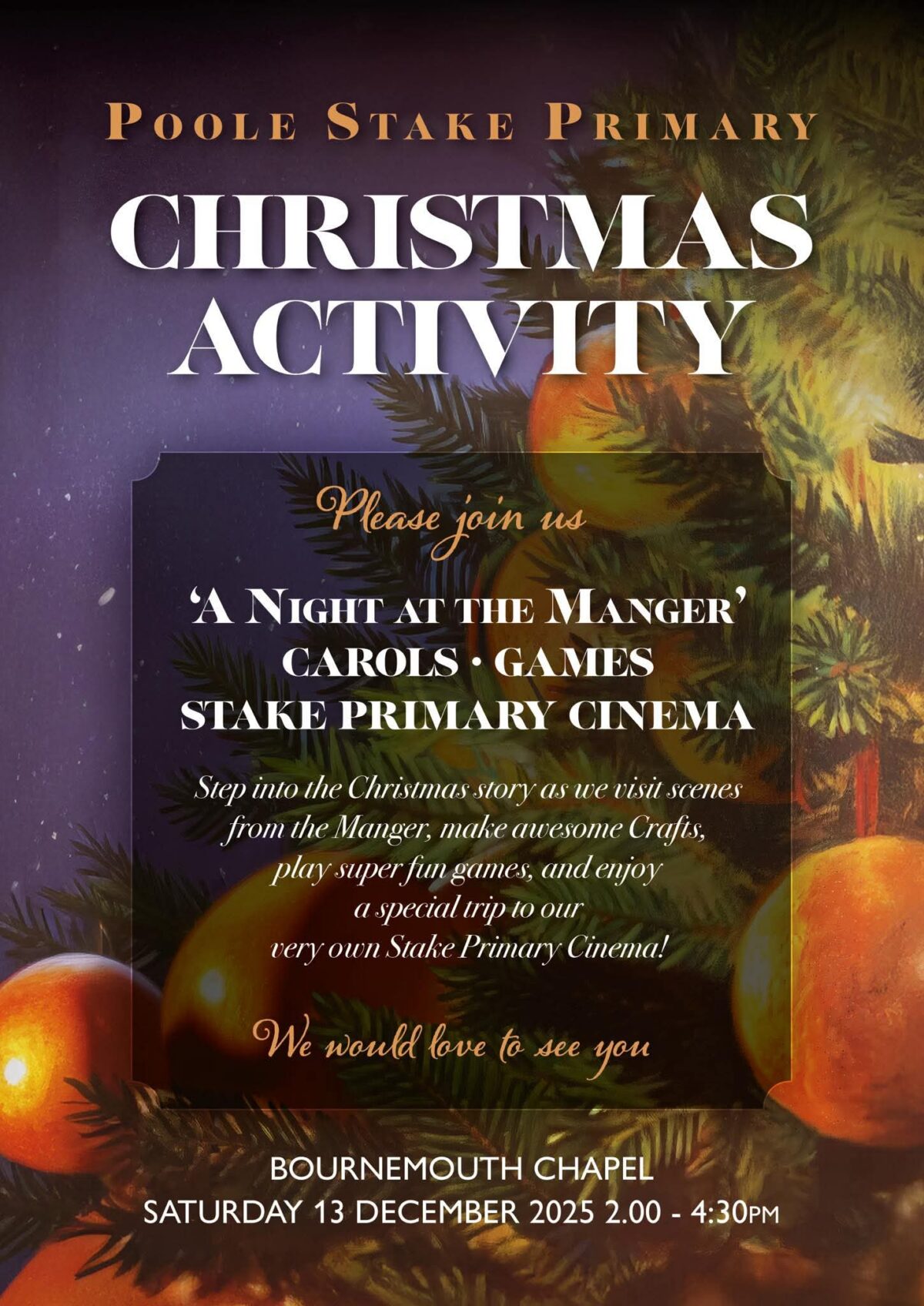 POOLE STAKE PRIMARY CHRISTMAS ACTIVITY Please join us A NIGHT AT THE MANGER’ CAROLS GAMES STAKE PRIMARY CINEMA Step into the Christmas story as we visit scenes from the Manger, make awesome Crafts, play super fun games, and enjoy a special trip to our very own Stake Primary Cinema! We would love to see you […]