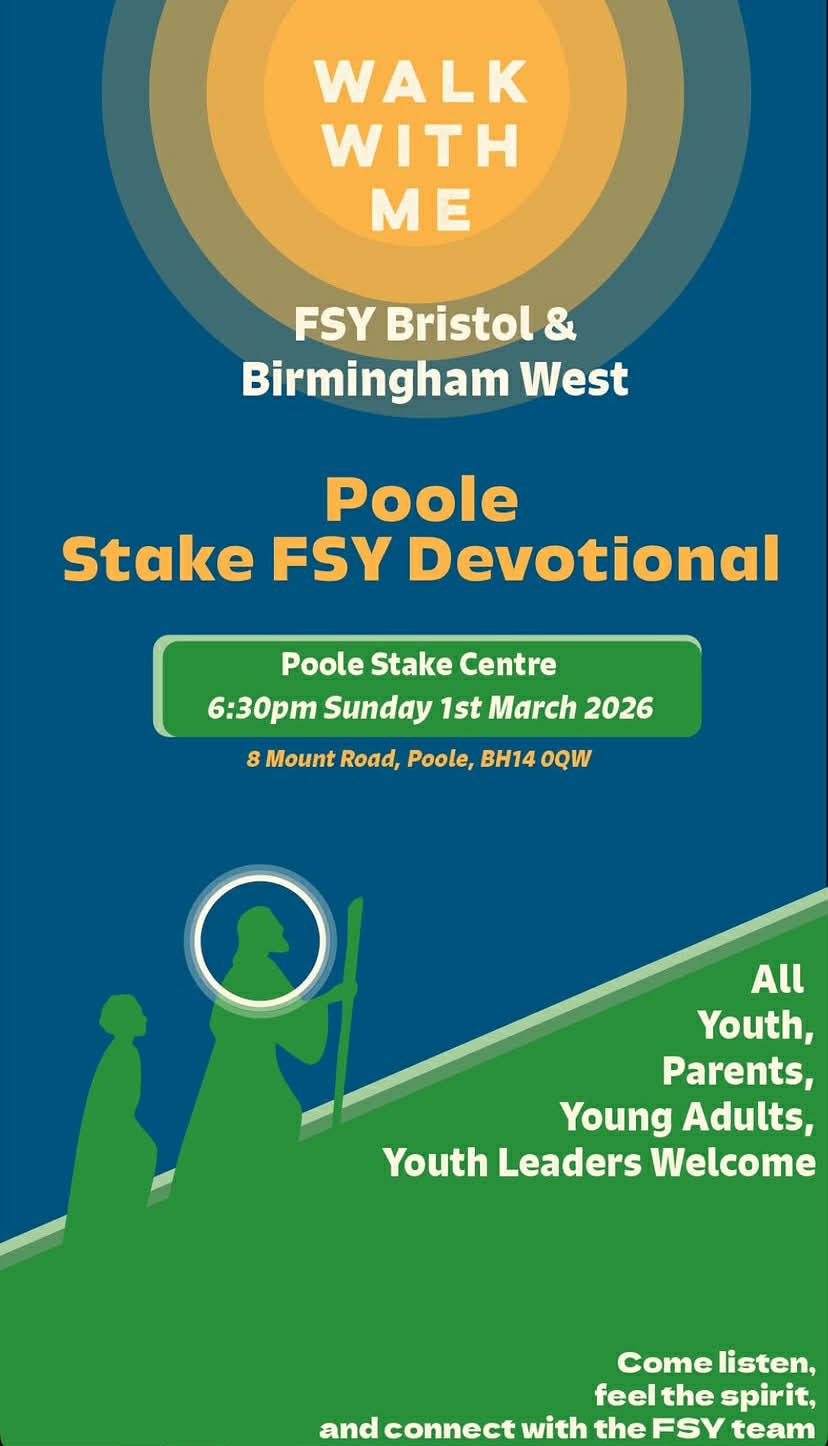 2026 YOUTH THEME WALK WITH ME “Behold my Spirit is upon you, wherefore all thy words will I justify; and the mountains shall flee before you, and the rivers shall turn from their course; and thou shalt abide in me, and I in you; therefore walk with me.” -Moses 6:34 Sunday 1st March 2026 Poole […]