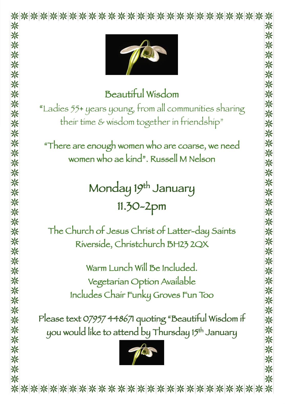 Please text 07957 448671 quoting “Beautiful Wisdom if you would like to attend by Thursday 15th January
